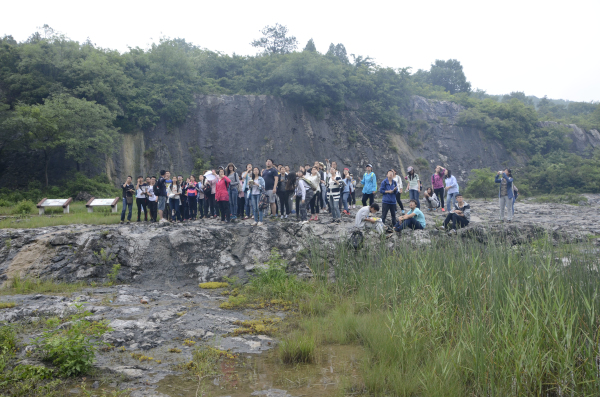 接着踏上泥泞的路走向下一个目的地----黄龙山。教授为我们指导这里岩石的岩性、类别及成分,并让同学们自由观察并寻找化石等。
