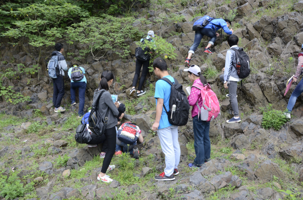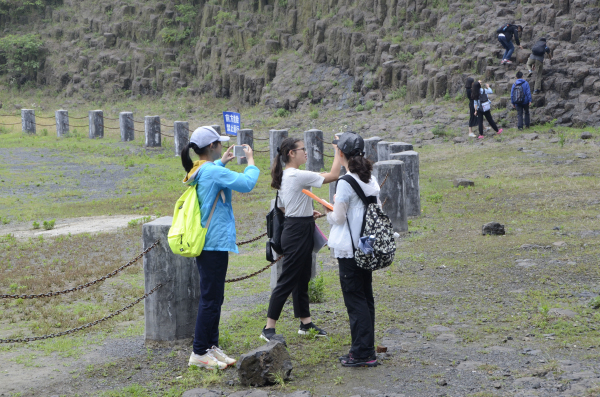 下午同学们来到了六合国家地质公园,映入眼帘的是蔚为壮观的石桂林。老师和同学们讲解了玄武岩柱状节理的形成,巩固了课堂上所学知识。