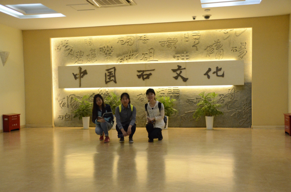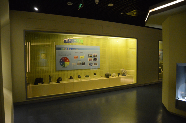 宝玉石文化、文房石文化、园林和观赏石文化,陈设形式新颖独特、展品内涵丰富。该展厅包含有古代中国的石文化介绍、大型岫岩玉雕件、翡翠介绍、知名宝石展台、矿物观赏石展台、四大名石之昆石、大型海百合化石标本等。同学们在这个展厅的合照: