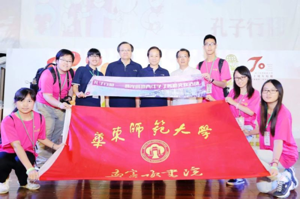 书院孔行团队与台师大师长合影 坐标:台师大礼堂