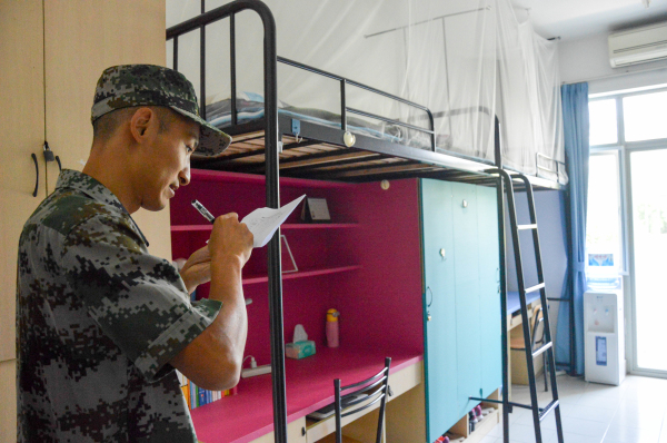 经过教官们两天的内务教学,同学们的宿舍都有了大变样,被褥叠放有模有样,窗明几净,焕然一新,这都充分证明了这次军训课堂教学成果显著。虽说抽查结束,但同学们一定要把这个好习惯一直保持下去哦~