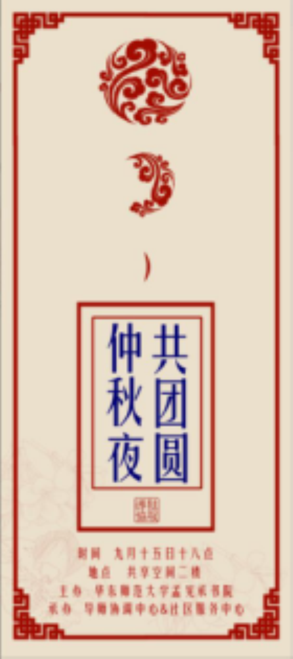 9月,孟宪承书院迎来了近400名来自全国各地的2016级新生,他们为书院注入了新鲜活力和生命力。佳节临近,思乡更甚,为了使留校的书院学子们度过一个快乐而温馨的中秋夜,带给他们另一种团圆的体验,同时也能感受全国各地中秋文化,社区服务中心和导师协调中心共同策划举办了本次“地域中秋”主题嘉年华活动。在当代传统节日气氛逐渐淡化的背景下,本次活动给予书院学子丰富多彩的传统节日风俗体验,唤醒当代大学生对中国传统节日文化的演变、发展与传承的思考。
