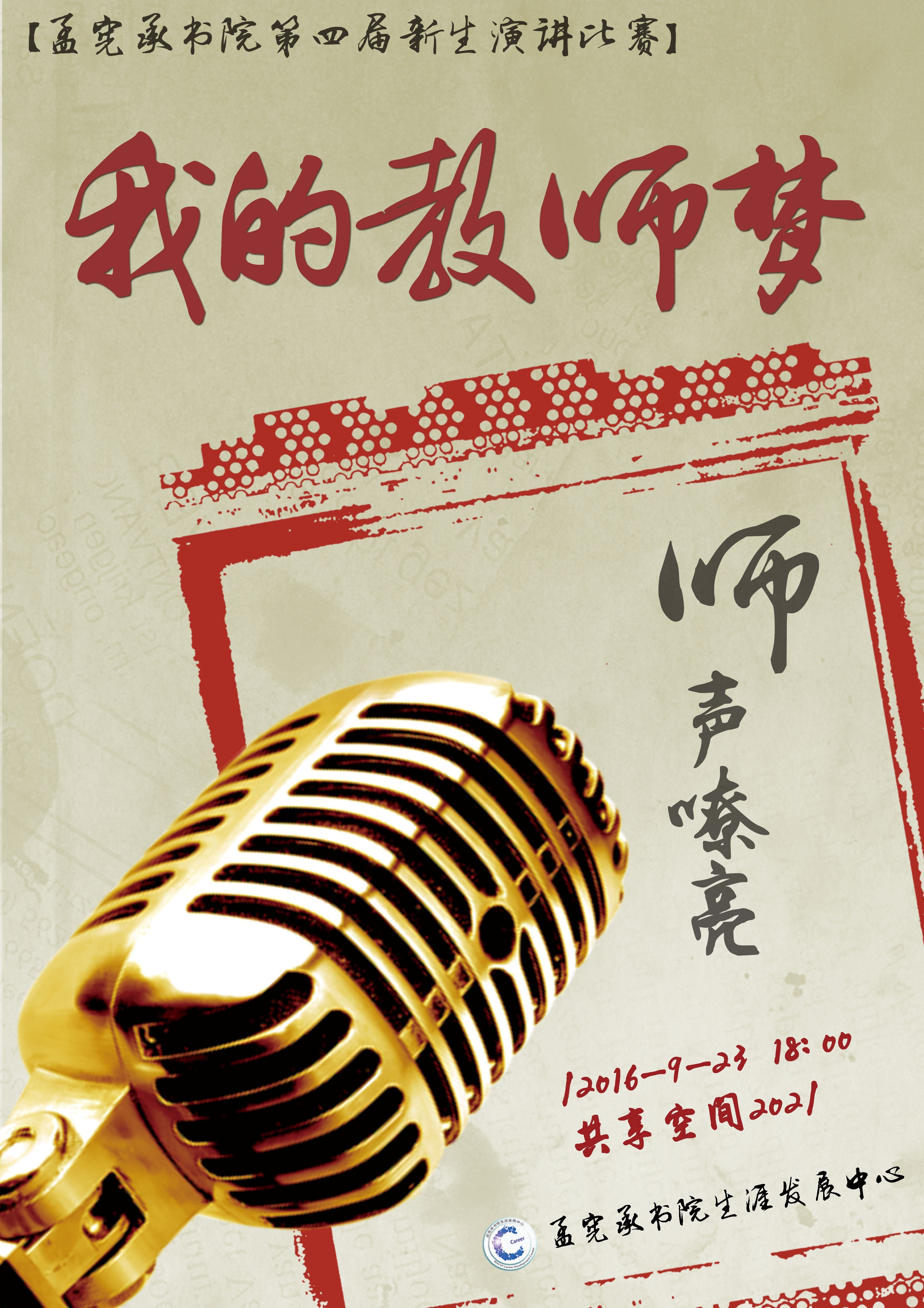 “我的教师梦——师声嘹亮”新生演讲比赛面向孟宪承书院2016级新生开放报名啦!