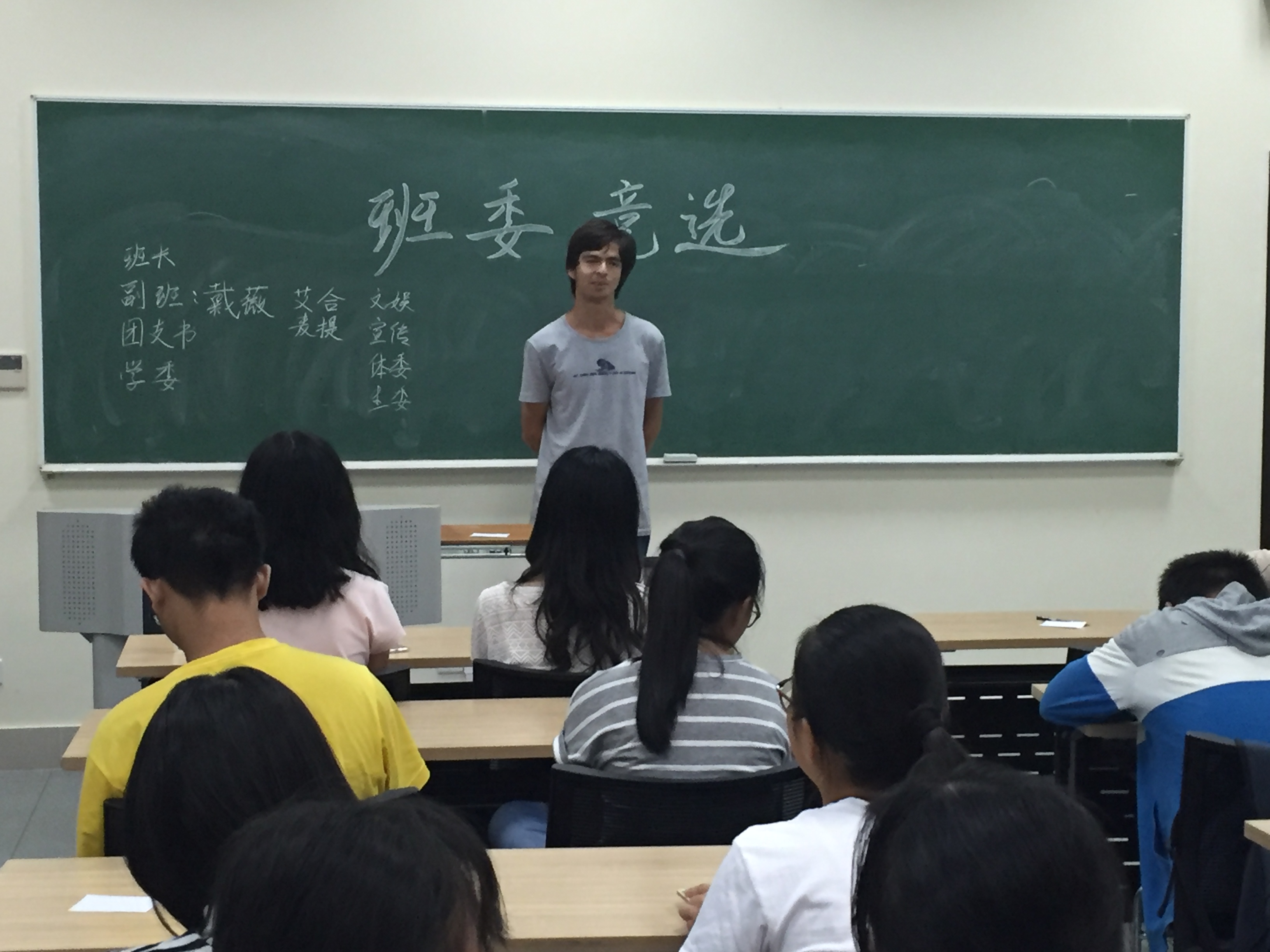 紧接着,就是激动人心的班委换届选举了。在选举开始前,班长简单介绍了此次竞选的规则,保证了此次竞选的公开、公平与公正的原则,同时也鼓励同学们把握住这次机会,大胆地上台竞选适合自己的职位。