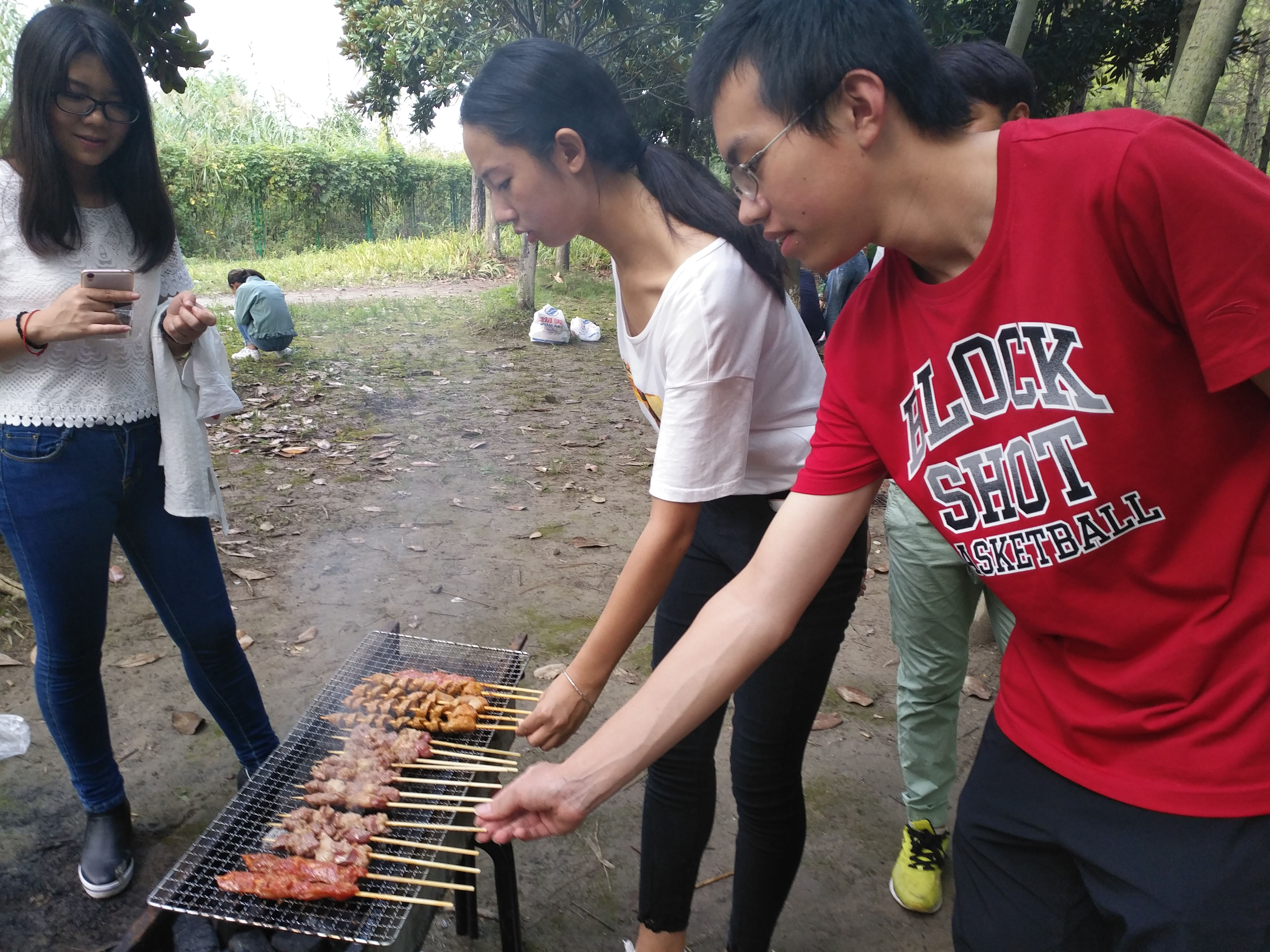可能是大三的学长学姐们比较害羞,或者是第一次见面比较陌生,感觉刚开始的时候两个年级之间的交流很少,但是,随着渐渐的熟络,聊天也变得多了,一起烤肉,一起聊天,在之后甚至学长学姐去抢学弟学妹们新烤出的肉,尽管不是那样美味,但是充满温馨与亲情。偶尔还会过来一个学弟问我们他烤的好不好吃,顿时感觉隔阂已去,我们更像老朋友一样。