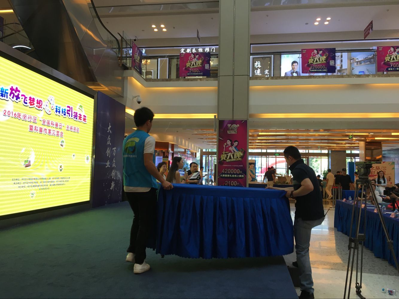 9月24日早晨7:30,孟宪承书院公益中心的工作人员带领志愿者们前往红星美凯龙浦江商场的颁奖仪式现场。志愿者们早早到达会场,陆续投入紧张的工作之中,随处可见志愿者们忙碌的身影。