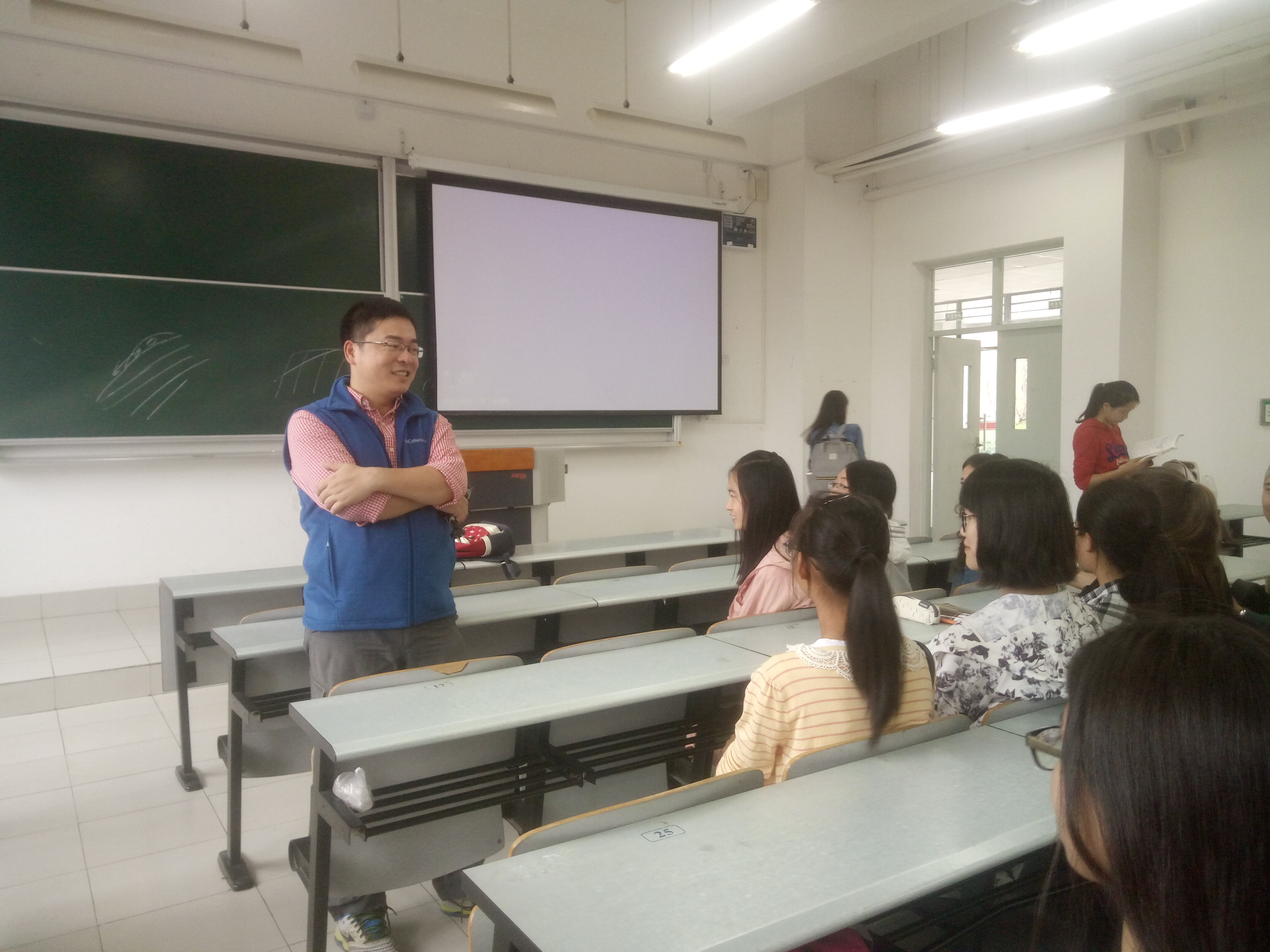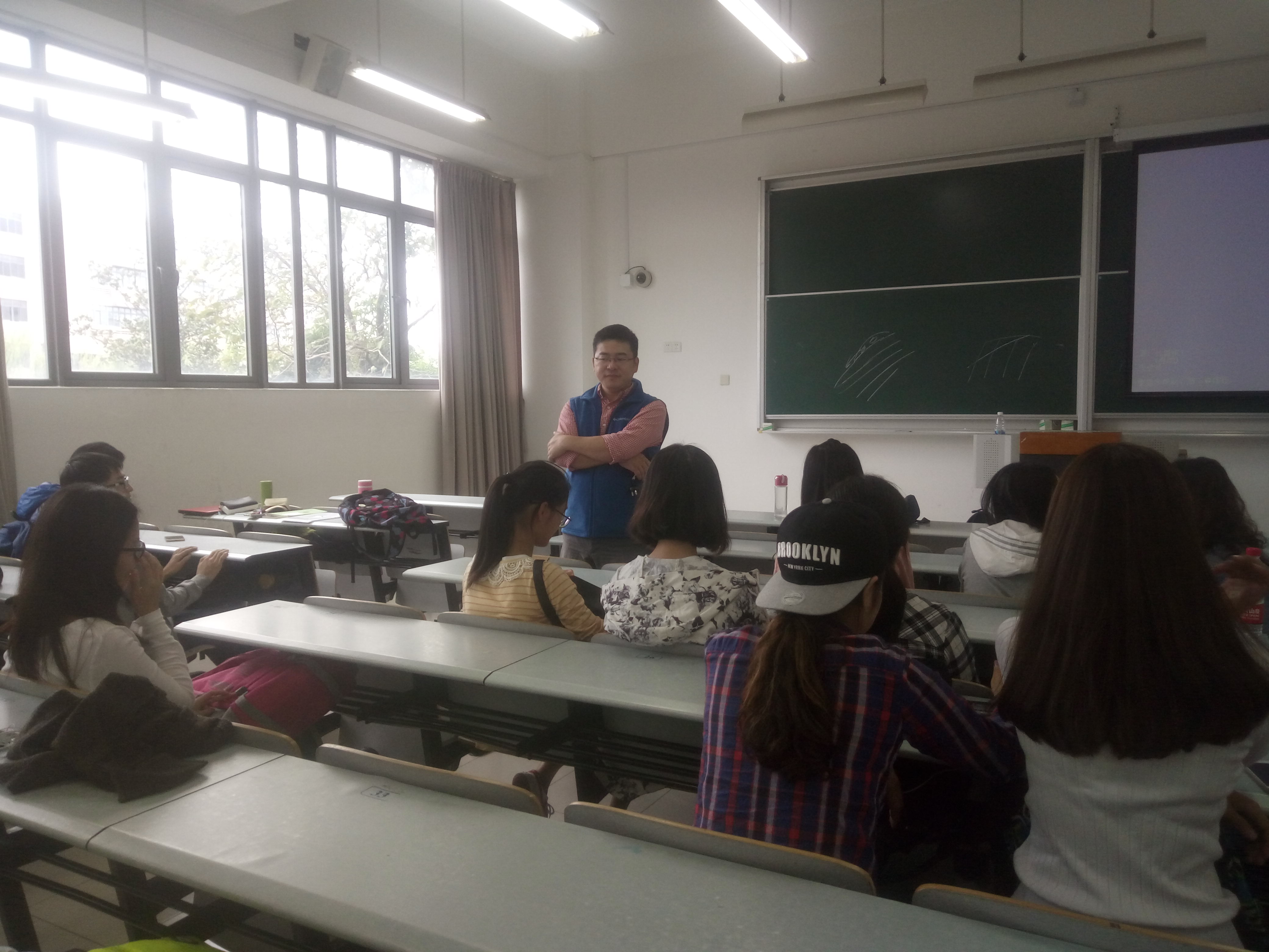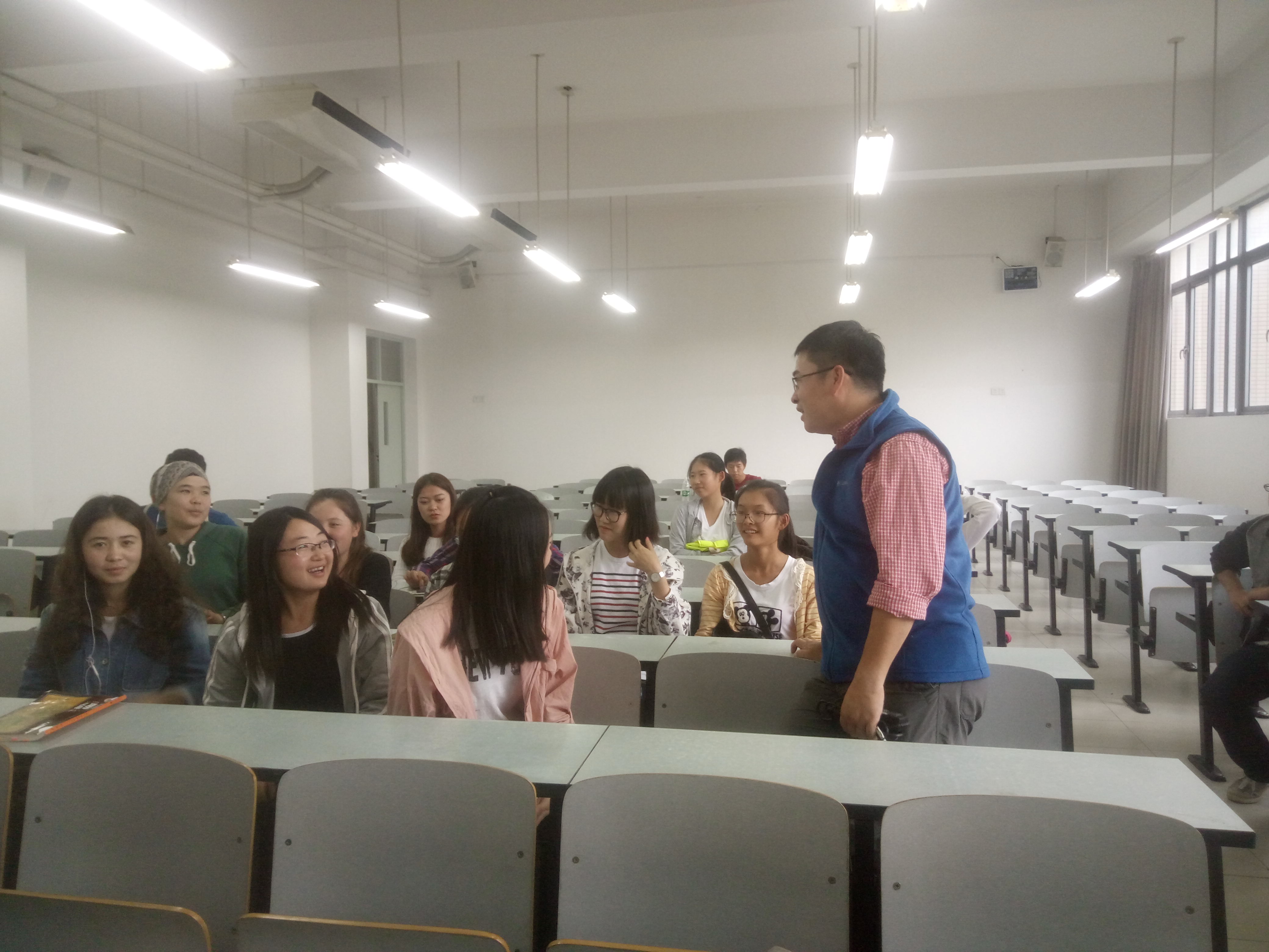 2016年10月12日两点四十分第二教学楼108教室,15级地理科学专业的同学举行了周立旻老师的人生导师交流会。这一次的人生导师交流会在课下举行,全班同学都参与进来。