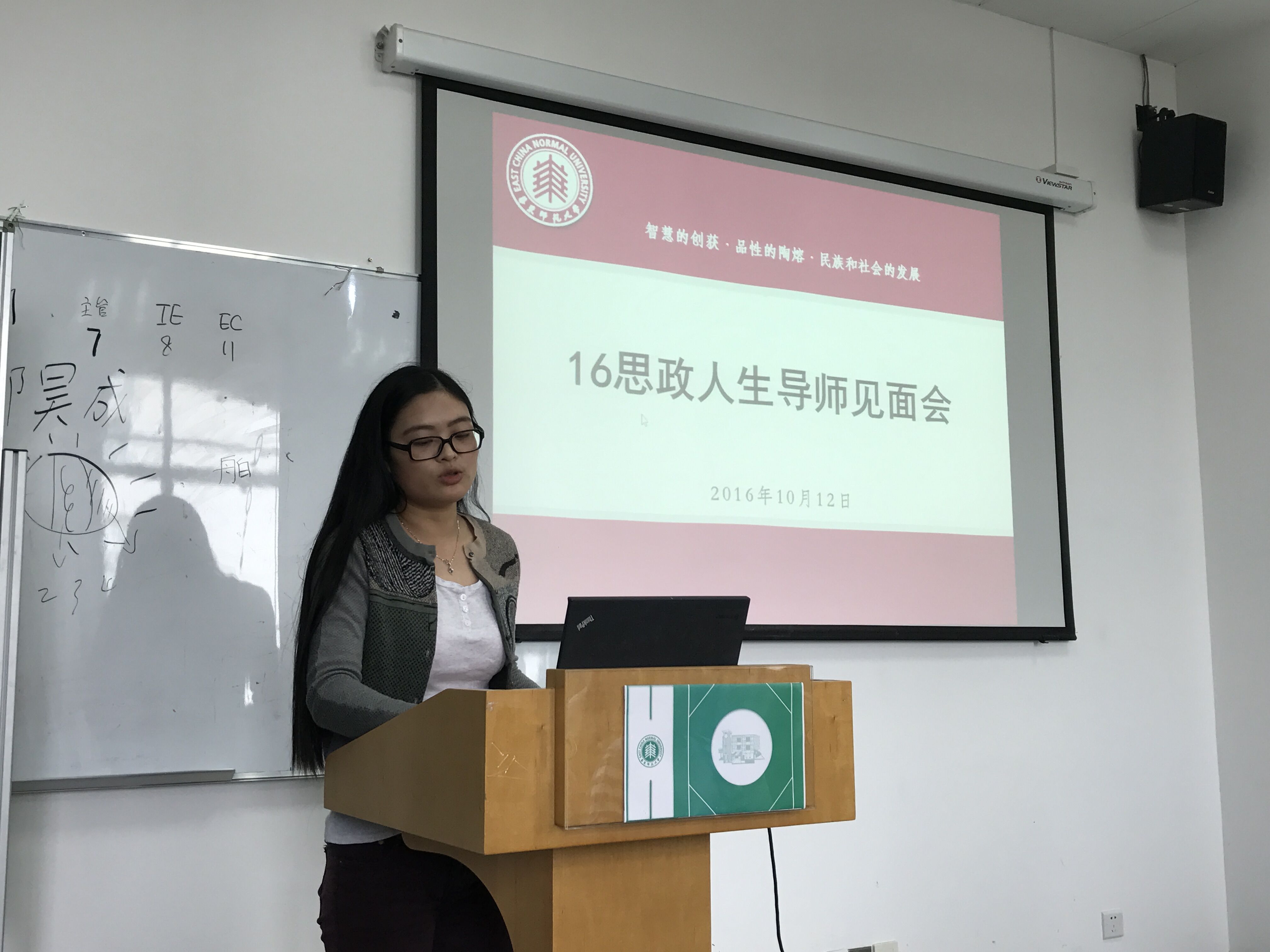 2016级思想政治教育专业本科生人生导师见面会于2016年10月12日中午在共享空间302教室顺利举行。本次见面会由思想政治教育专业本科生辅导员刘佳老师主持开展,人生导师许瑞芳老师、黄建君老师出席本次见面会。