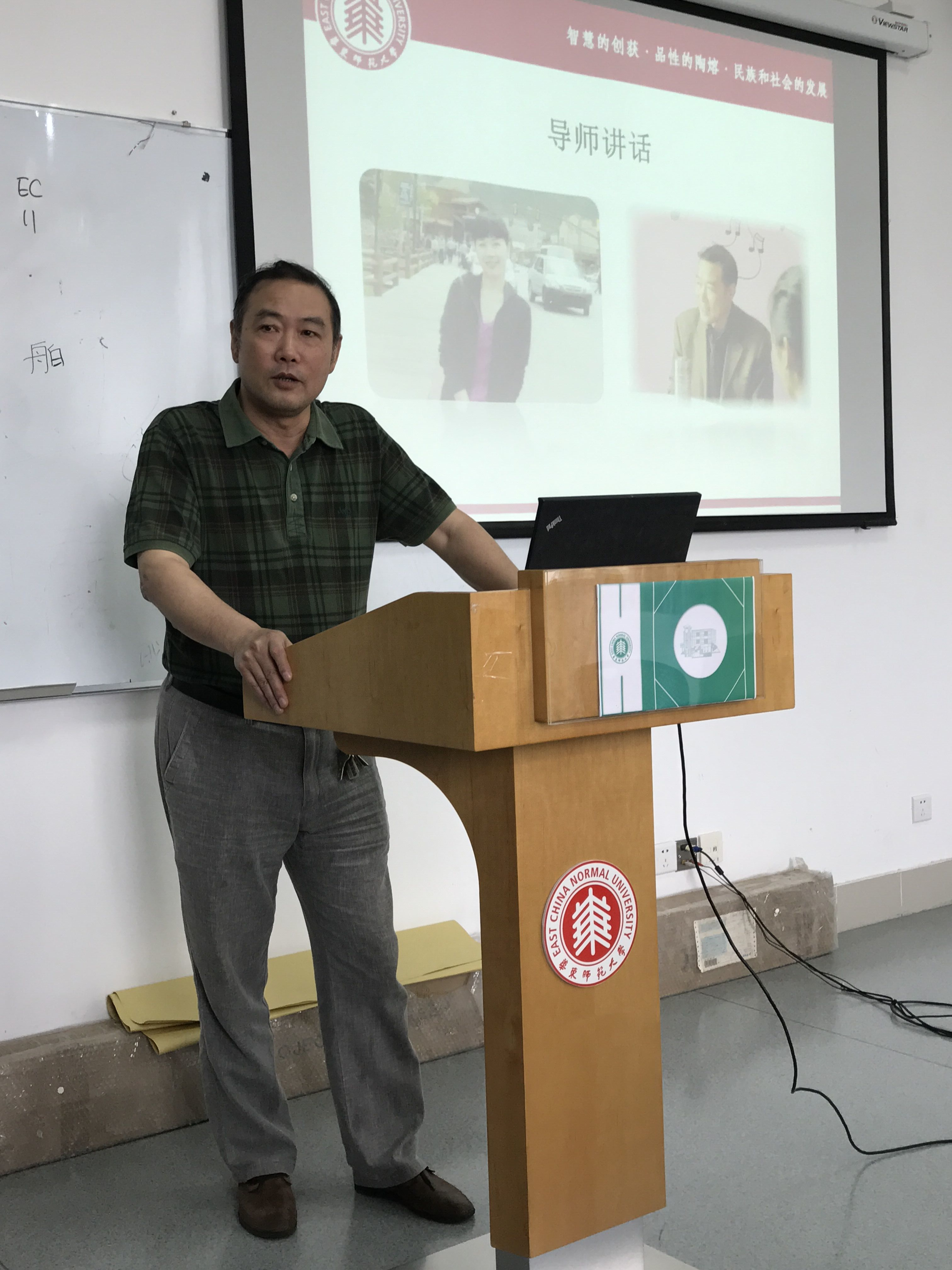 黄建君老师在同学们的掌声中来到台上。“大家吃饭了吗?”,黄建君老师亲切的问候大家。他说:“大学是一片充满知识的新天地”,并与同学们分享了自己刚进入大学的感受,鼓励大家在大学中多去尝试新的东西。他给同学们提出了两条建议,第一是读经典书籍,第二是多听讲座。