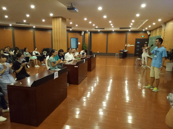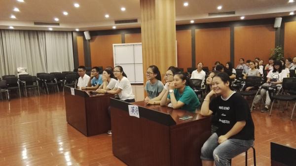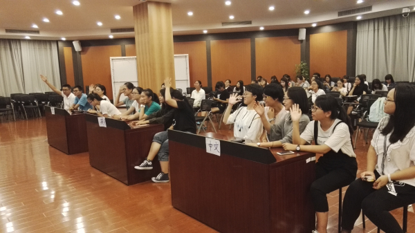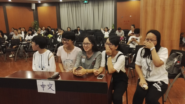 首先进行的是判断题环节:在轻松完成第一环节后,英语系以7分的优异成绩赢得第一场。思想政治教育专业和中文专业以4分的成绩并列第二。为了活跃气氛,对于输的队伍事先准备了小小的惩罚,通过抽签来决定惩罚方式,
