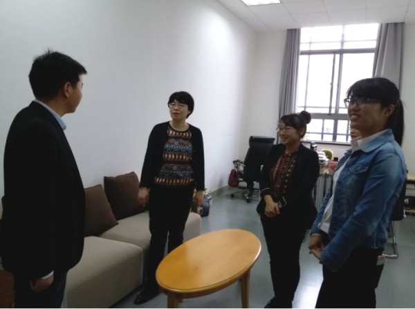 在参观完孟空间之后,两院一行13人一同前往学生共享空间参观并座谈交流。进入共享空间之后,陆云鹏老师详细地为南洋书院的师生介绍共享空间的构造以及各房间的用途,之后孟宪承书院的党委书记兼院长吴薇老师、党委副书记杨艳红老师、副院长苏振兴老师纷纷对南洋书院师生此次来访表示热烈的欢迎。