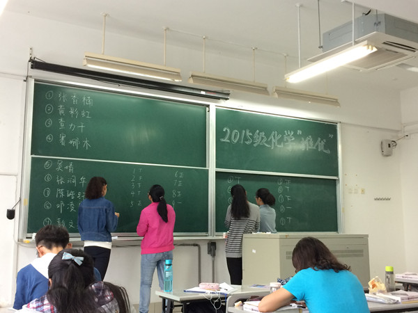 10月21日上午,15级化学专业举行了每学期一次的“推优”活动。尽管窗外下着大雨,气温骤降,同学们还是准时到达指定教室,一起把心目中的优秀团员选出来。