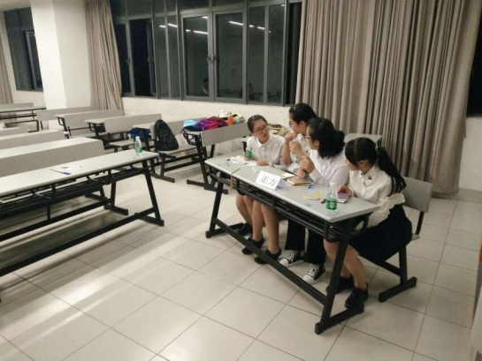 辩手们在评委讨论环节时反思交流本场比赛的问题