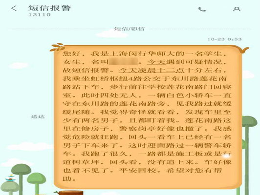 之后沙老师就一条短信报警的内容,向同学们强调了校园周边的安全问题。她讲道,我们校园周边及校园内还存在很大的隐患。有不少同学反应说,校园内路灯过于昏暗,外卖小哥的车速太快等等。这些问题一时半会是难以得到解决的,那么同学们就更加应该注意自己的人身安全问题,比如不要在外面逗留太晚,行走在路上是尽量靠边走等,以保障自己的安全。