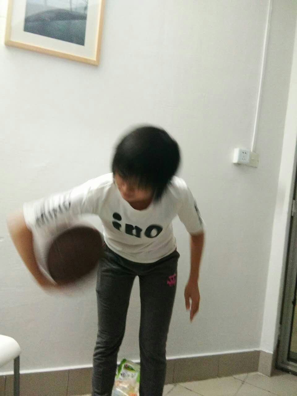 成员们聊着聊着,就一致表示要负责人露一手。可是在室内不好操作啊,怎么办?负责人怎好推掉成员们的好意?她拿起随身带着的篮球,耍起了“篮球绕体”,队员看得津津乐道,时不时鼓起掌来。