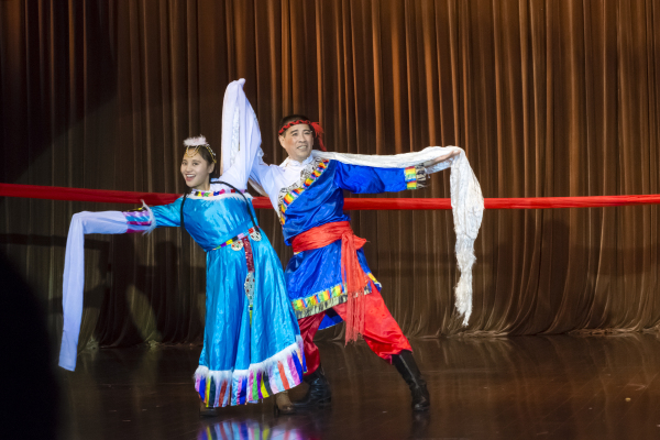 神秘嘉宾益老师惊喜出场,在《天路》悠扬的音乐声中缓缓起舞。充满民族韵味的舞蹈引得全场掌声阵阵,把晚会推上了一个新的高潮。