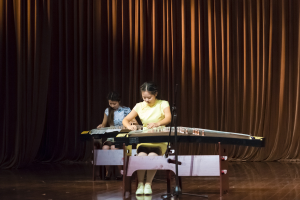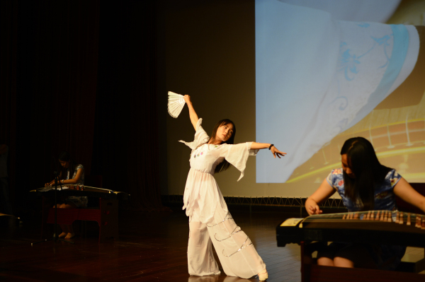 古筝合奏《瑶族舞曲》,身着旗袍的姑娘们素手轻拨,柔和动人的曲调叮叮咚咚,空灵之声缓缓泻出,如山涧泉鸣,似佩环玲响,可谓余音绕梁,三日不绝。美丽的伴舞清新淡雅更加让人心动。