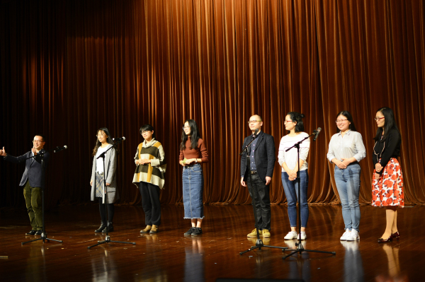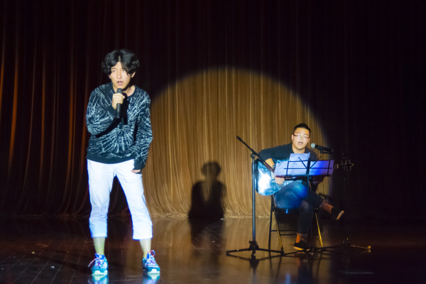 来自生物科学专业同学的吉他弹唱,舒缓起伏的旋律,温暖走心的倾情演唱,让全场观众沉醉其中,不由地跟着曲调轻声哼唱。