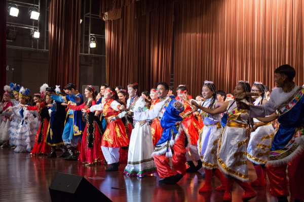 由蒙古族、维吾尔族、藏族、哈萨克族同学带来的民族舞蹈串烧《盛世欢歌》压轴出场,将整个晚会的气氛推向最高潮。各具特色的民族风情,不仅带来视觉和听觉的盛宴,更加展现了孟宪承书院是一个和谐包容温暖的大家庭。