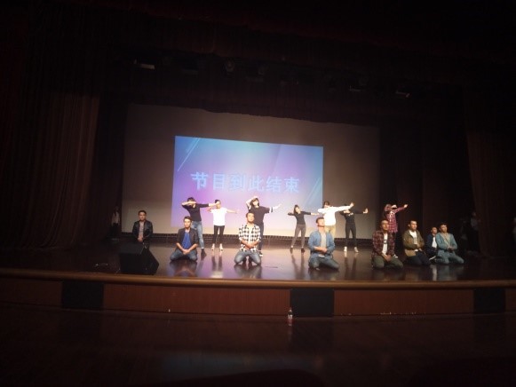 终于,“孟想秀”来了。眼看着离晚会开始的时间越来越近,我们的心也越来越收紧。3,2,1,然而预想的开场视频没有放出来。于是启动紧急预案,台上在救场,台下在紧张地检查播放设备。虽然最终,我们准备良久的视频和背景图没能在现场和观众见面,但是最后的舞台效果也并没有让大家失望。看着观众席上我们精心摆放的荧光灯一个个点亮,汇成一片荧光灯的海洋,我们的心也被这片光芒照亮,让我们依照心中蓝图慢慢慢慢将“孟想秀”描绘而出。