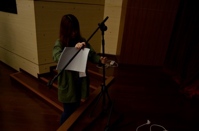 到了“孟想秀”前夜,场务组将历时一个月准备好的各项物资从学生共享空间尽数搬运到紫竹音乐厅——承载我们这一个月梦想的地方。彩排开始,每一个工作人员都各司其职,每一张背景图片的展示、每一段音乐的播放和每一束灯光的照射,均要恰到好处。每一个舞台效果,离不开节目组的奔走通知、场务组的来回搬运、灯光组的耐心操控和导演组的安排指挥。一次,两次,三次,我们重复着、忙碌着,直至深夜。那个夜晚,我们共同见证了华东师大的凌晨一点半是什么样子,天微冷,雾气氤氲,一阵风过来吹散了雾气,吹不散的是我们共同坚持的梦想。