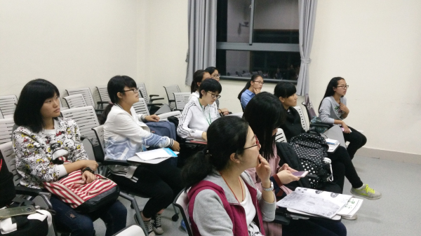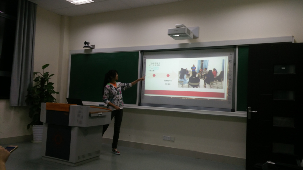活动在主持人的简单介绍中拉开了帷幕。稍做简单介绍后,13级李四仙学姐开门见山地分享了制作PPT的主要原则和技巧---学姐将PPT制作与展示的要点和技巧具体罗列了8项,向同学们一一介绍和讲解,一边是优美吸睛的图片,一边是跳跃而富有动感的视频,无比专业和充满创意的动画效果让同学们看的目瞪口呆,啧啧称奇。展示后,同学们积极参与,主动提疑。学姐主要就同学们感兴趣的效果进行现场教学。揭开神奇背后的真相,可看到原来动画效果是在一张幻灯片中插入数十个动画效果,然后对每个效果间进行反复的调节已达到播放时的完美衔接制作成的。同学们学到了平时课堂之外的有用知识,获益颇丰。