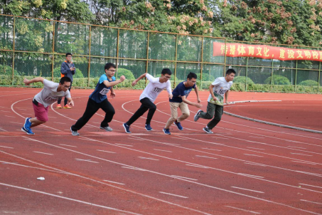 奔跑吧!让汗水追上我们的脚步!在男子100米预赛中,我们的同学奋力拼搏!