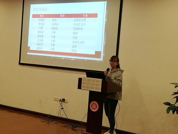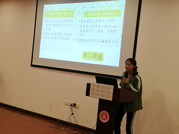 第一部分活动为部门答辩。作为书院科研项目答辩的工作人员们,在这里举行了一场精彩纷呈的答辩环节。各部门成员以部门为单位向其他部门成员介绍了自己部门的成员、背景、工作内容等,让大家更好地了解了科创中心各个部门的职能。