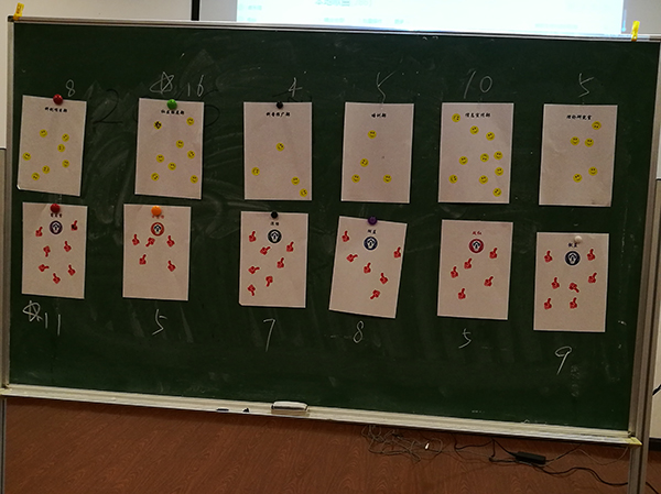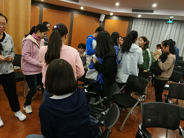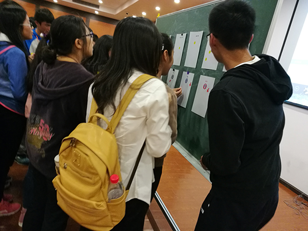 第二部分活动为学术年会模拟。这部分活动,大家不再以部门为单位,而是走出部门,寻找与自己徽章颜色相同的“有缘人”,重新组成一个新的team。共分为葡萄紫、橙色、深绿、湖蓝、玫红、靛蓝六组。