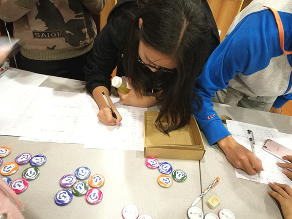随着时间的不断临近,大家都陆续到场签到,同时,也有着一份惊喜等待着他们,那就是精美的科创中心的徽章一枚。