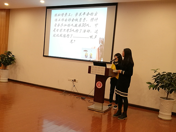 大家被置身于六种不同情景中,情景为举办学术年会活动过程中大家可能会遇到的问题,如“如何写策划”、“如何做宣传”等六个问题。每个情景大家有三分钟讨论时间,时间过后将由主持人随机抽组回答,并由权威人员进行评价,决定其获奖励还是惩罚。