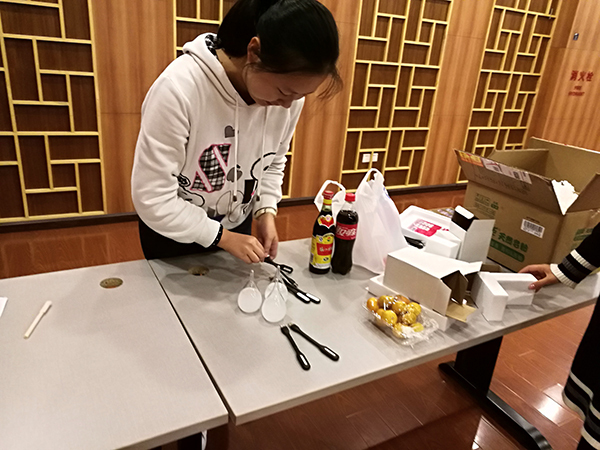 活动开始前,工作人员提前到场争分夺秒地布置场地,整理此次活动的奖品及所需用品。
