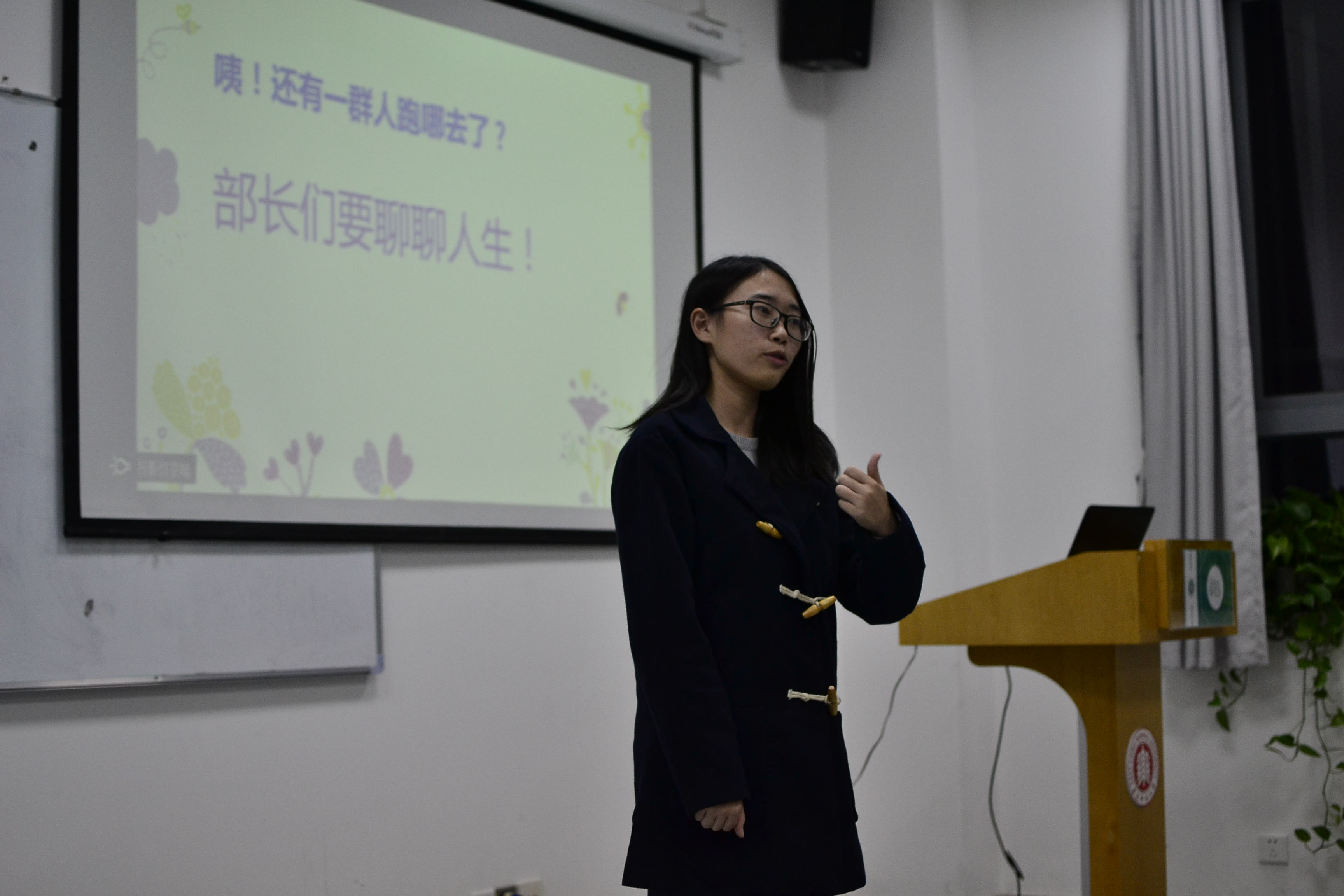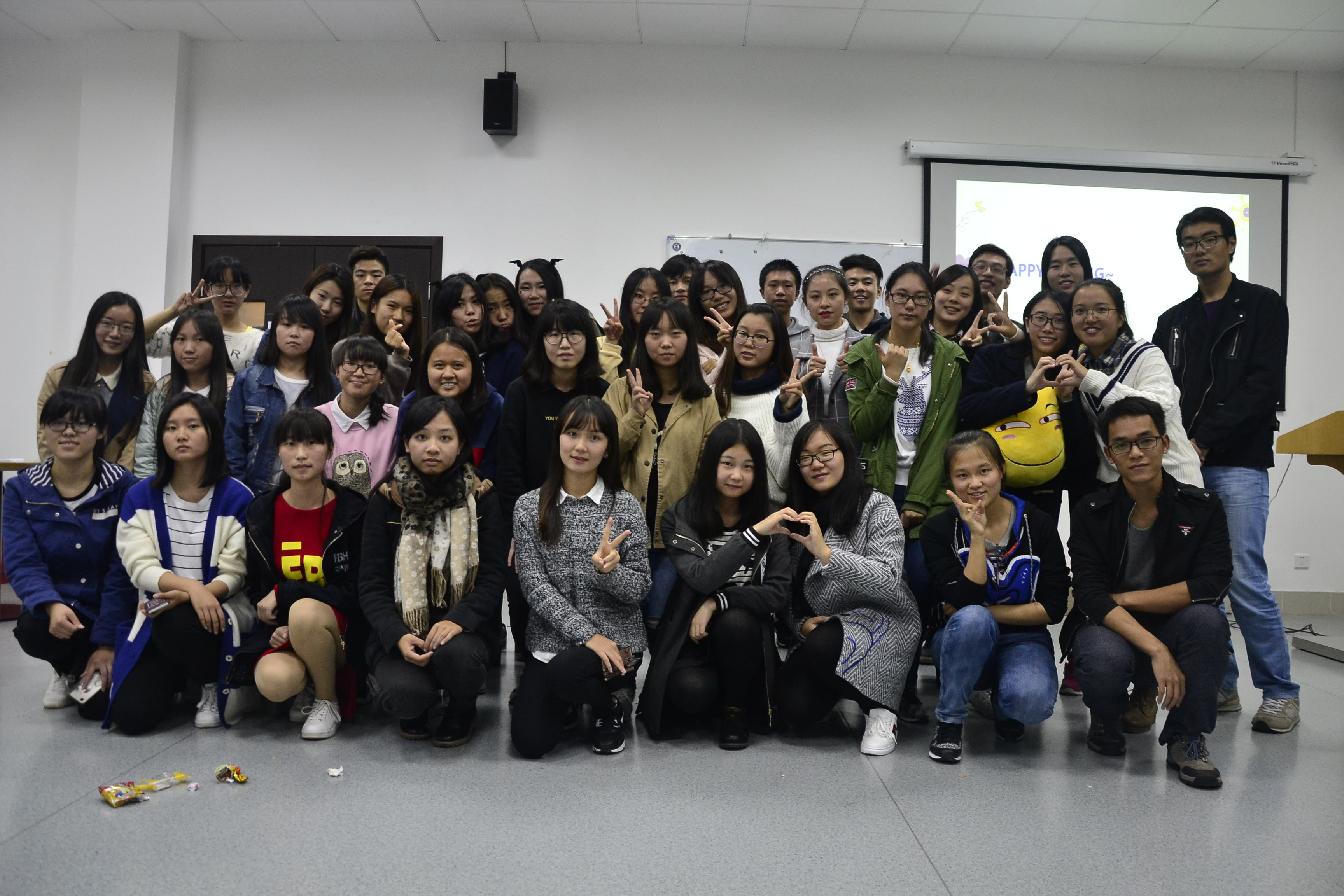 听完了让人陶醉的部长总结之后,最嗨皮的环节如约而至。正值万圣夜,大家的目光时不时的盯住桌上的糖果好吃的而按耐不住内心激动的心情。可爱的主持人给可爱的人儿发糖果发好吃的,一片欢声笑语,抢零食的打闹声让身处社团发展中心的我们觉得自己找对了组织找到了家。