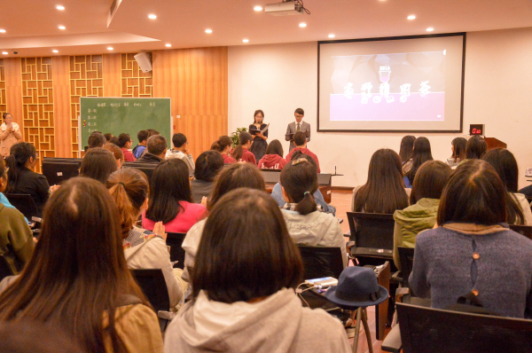 你所想象的未来教师是什么样子的?戴着黑框眼镜,穿着正装,站在三寸讲台上神采奕奕的模样,其实他们也可以在知识竞赛比拼中极力展现智慧幽默的一面。为打造未来优秀的“教育家”,坚持文理全面发展的教师培育理念,孟宪承书院文化建设中心主办的大型知识竞赛“老师请回答”第三季总决赛于11月1日18: 00在学生共享空间202完美收官。书院就业办公室主任益建芳,学业指导办公室主任李桦,书院团委书记陆云鹏,以及文化建设中心指导老师焦艳等受邀来到了活动现场,和众多孟院学子一起为选手加油打气,共同感受书院浓厚的文化氛围和赛场的激烈气氛。