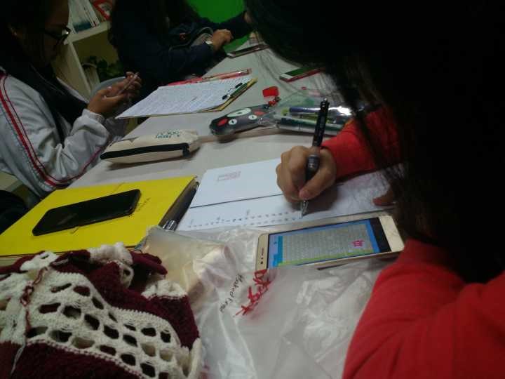 第一次学习活动,组员们充分借助APP学习了韩语的基本问候用语,学习氛围温馨,学习过程中欢声笑语不断,甚至引得路人隔窗拍照。