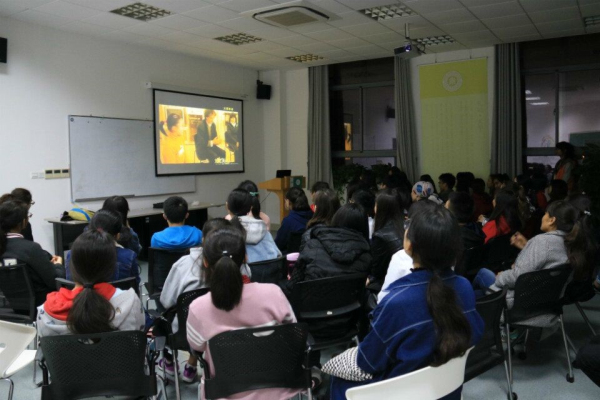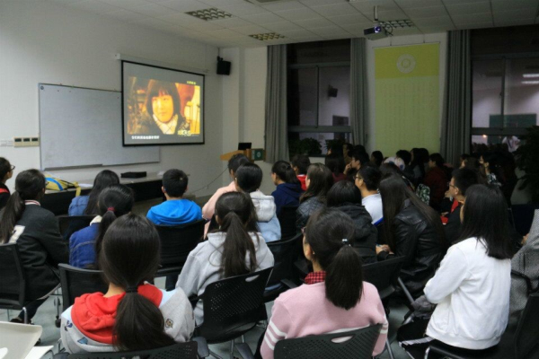 第三组成员吾尔巴兰同学简单介绍了此次团支部观影学习活动的流程,然后就愉快地踏上了我们的《大师来访》之路。这部真实拍摄的纪录片记录了世界著名的纽约爱乐乐团2008年到访上海,在乐团几名大师的鼓励下,一群喜欢乐器的青少年根据自己的理解,在短短三天内创作了一些原创乐曲,并和大师成功同台演出的过程,而最后当孩子们把乐曲交给中国的音乐老师时,得到的却并不是期待的鼓励……同学们都被这部片子深深吸引,展现出了浓厚的兴趣,大家全程都聚精会神、全神贯注的看着大屏幕。