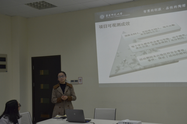 书院“载阳照月”各项目组的代表分别从成长变化、心得收获、不足反思等方面对他们暑期的社会实践进行了汇报总结。这八个项目组分散在祖国的大江南北,秉持着胡宏昌先生“自助人助,己立立人”的信念,将孟宪承书院的爱与关怀散播到祖国的各个地方。