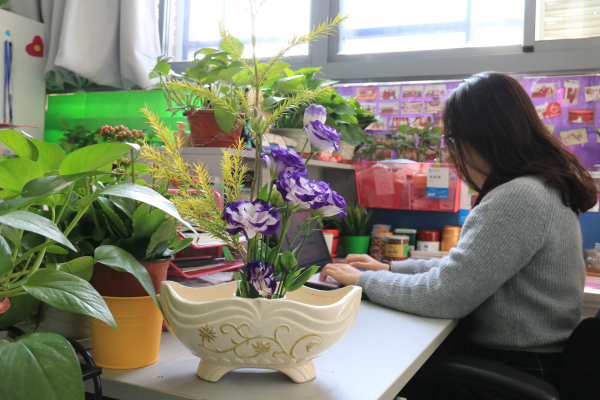 老师们迅速进入角色,在临时布置的花艺教室里,挑选了自己喜欢的花材,开始尝试使用剑山、花剪、花器等专业的花艺物品,制作一份自己的插花艺术作品。这些五颜六色的花卉和精美雅致的花器,顿时让每位教职工从繁忙的工作环境进入到艺术熏陶的世界。全体教师在轻松愉悦的氛围中,全身心地投入到此次花艺的学习沙龙中,现场欢声笑语不断,一派其乐融融的景象。
