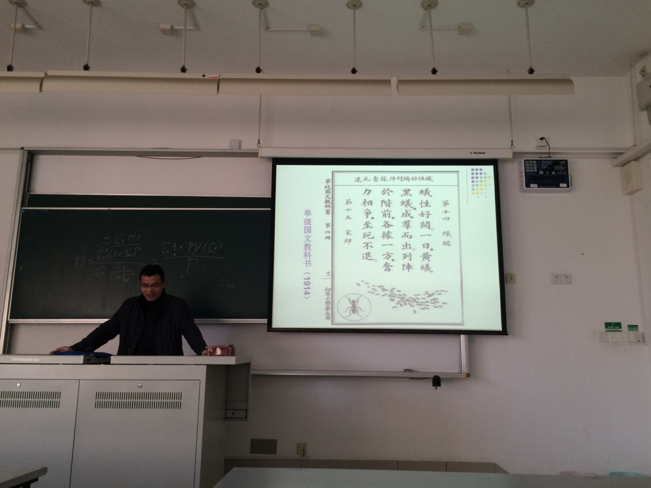 2016年11月28日下午,14级中文的一些同学们根据自身时间和兴趣来到指定教室,聆听张心科老师关于清末民初到抗战时期儿童文学的主题讲授。