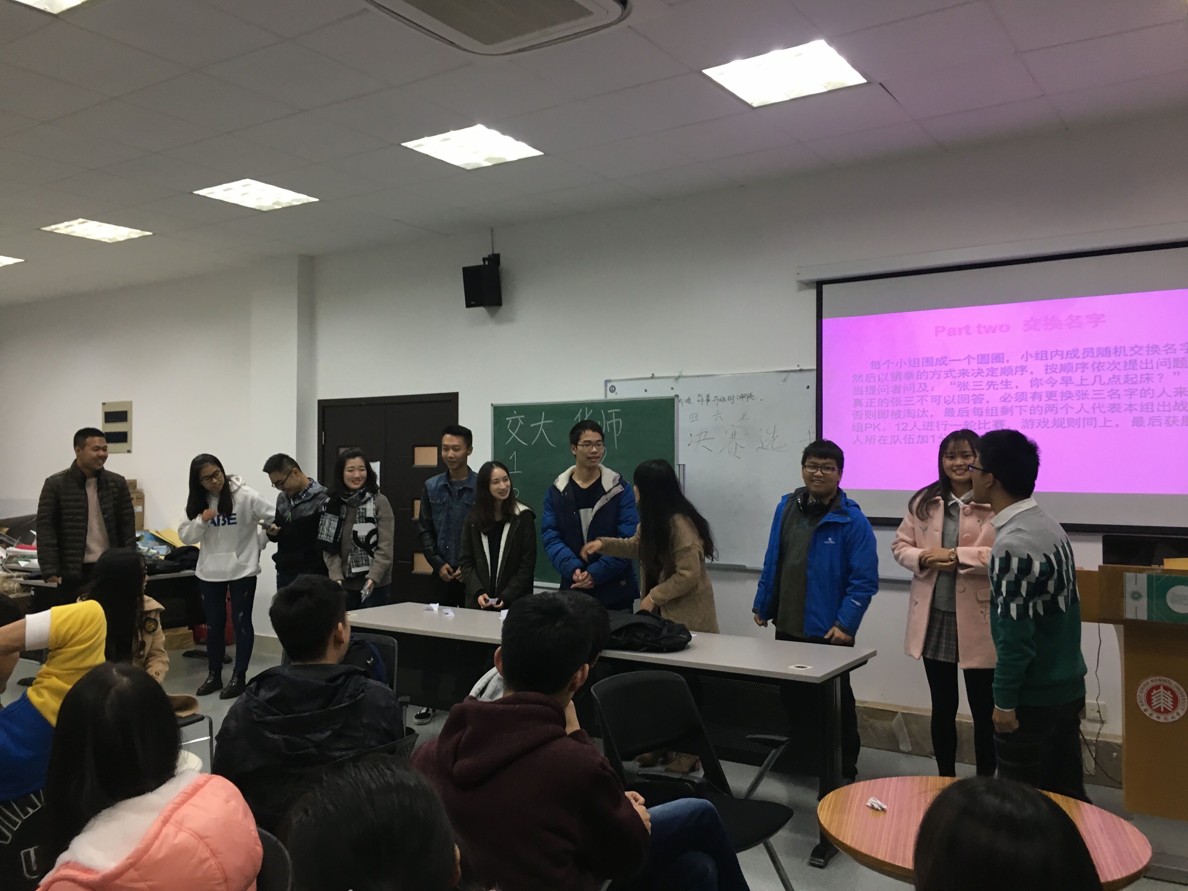 2016年12月11日晚七点,孟宪承书院英语专业本科生2016级第一团支部在共享空间302举办了“凝聚青春力量,展示青春风采”主题团日活动。此次活动邀请了上海交通大学的同学们一同参加,打破莲花南路的阻挡,将两个专业、两个学校的同学们紧紧地联系在一起。不仅增进两校同学间的友谊,更切合主题,共同体验飞扬的青春!