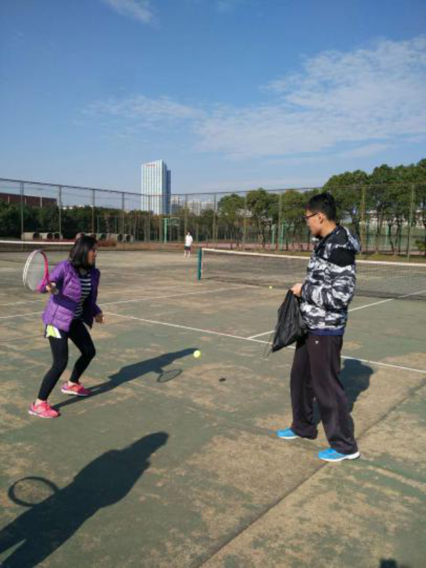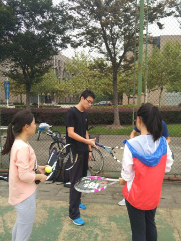 12月3日这个周六,阳光正好,大家带着心爱的网球拍,早早地来到西操网球场,享受阳光的喜悦与网球的快感!为了让大家能够打出最标准,最漂亮,最有范的网球,网球大神臧银鑫首先对向大家详细介绍了一下网球拍的基本结构,然后教授了正确的握拍和击打姿势,当然每位组员都学习得极为认真!