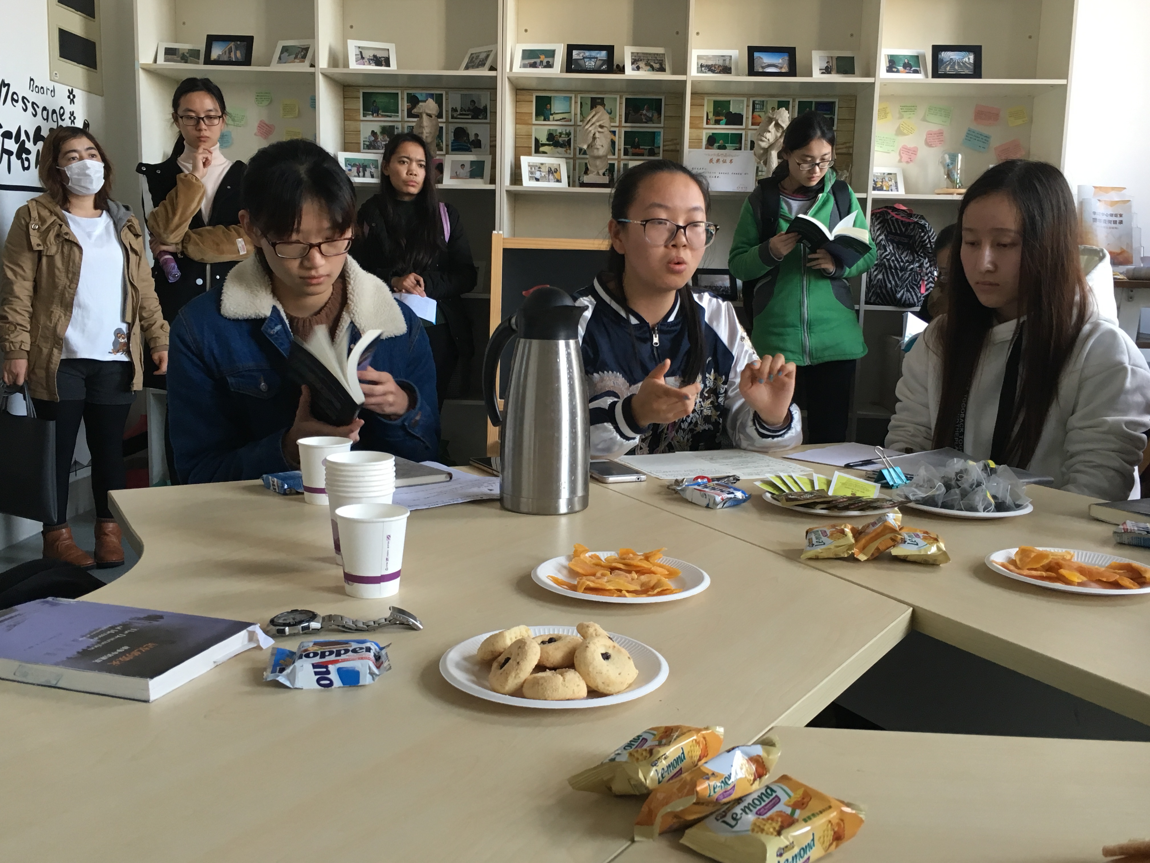 21日下午两点半,参加读书会的同学早早来到共享空间为读书会的举行做准备,他们提前准备好了小零食和水并布置好了教室。