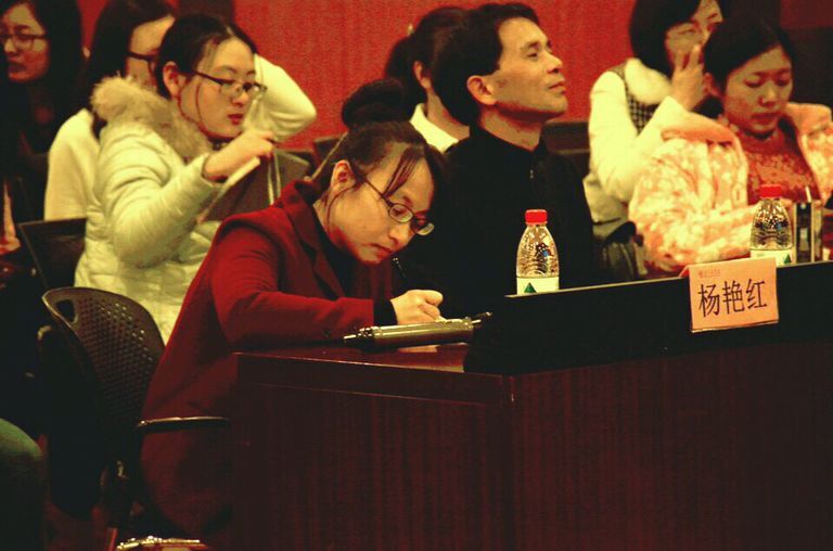 接着就是部长与小干事精心准备的话剧啦。第一幕主人公琳琳的“惊艳”装扮瞬间引起大家的注意,角色的大胆尝试,勇气可嘉!随着话剧情节的逐步展现,这件似遥远似眼前的大事——填志愿,勾起了大家的回忆。接着,父亲的反对、奶奶的支持、同学的迷惑、老师的忠告将剧情推向了高潮,观众们也在矛盾中反思自己的那条或平坦或崎岖的教师路。