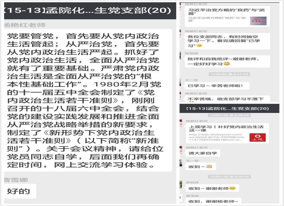 化学专业学生党支部各党员线上学习习近平总书记系列讲话