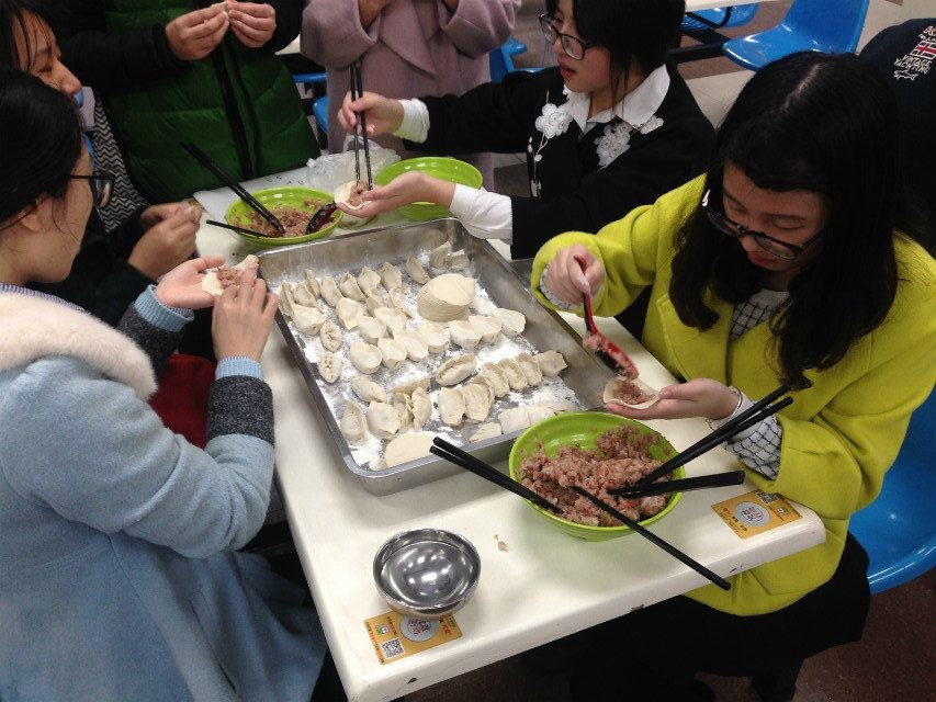 “贤妻良母”型的女同学包出了比较地道的饺子,而有些俏皮的男同学则包出了包子形状乃至饼子形状的饺子。就在大家包的不亦乐乎的时候,班长用水果做出了几种独具创意的馅儿,同时他说道:“同学们来自各个不同的城市最终凝聚成一个团结有爱的班集体,好似饺子的馅都有不同的品位和口感,但被包进饺子皮中时都变成了饺子。”在包饺子娱乐的同时也强调了班集体荣誉感,可谓一举两得。