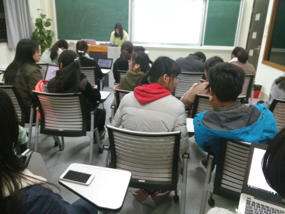 活动一开始,学姐进行了简短的自我介绍,接下来便投入热列的分享活动中。分享过程中,仍然有慕名而来的同学们,他们安静地来到后排,生怕打扰前排同学聚精会神的听讲。
