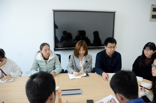 孟院就业办公室雷妍老师向与会的团队成员介绍了就业办公室历史并阐述了其存在的目的,就是为广大书院学子实现中小学教师梦服务。为了迎接即将进入就业角色的2014级全体学生,我们今天聚在了一起,明确每个人的工作事项及应端正的工作态度。在接下来的工作中,我们将共同开展的活动有:兹定于3月底的2018届就业动员大会;4月初的各个省份就业分享交流;4月中下旬的就业政策宣讲会;5月初的班级分享会和5月下旬的就业手册宣讲,以及最终各省份就业情况分析报告。这一系列的活动旨在与让我们的同学们尽早实现角色调整和融入到就业历程中,实现每一个人的中小学教师梦想。