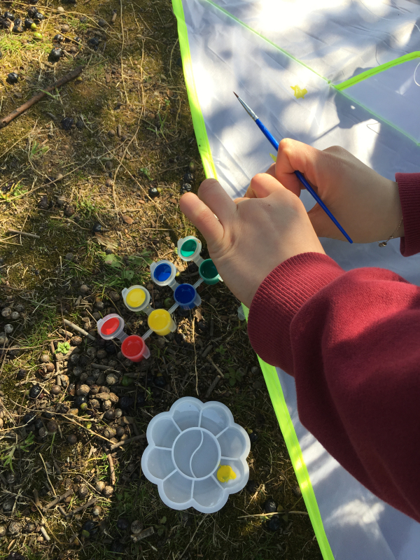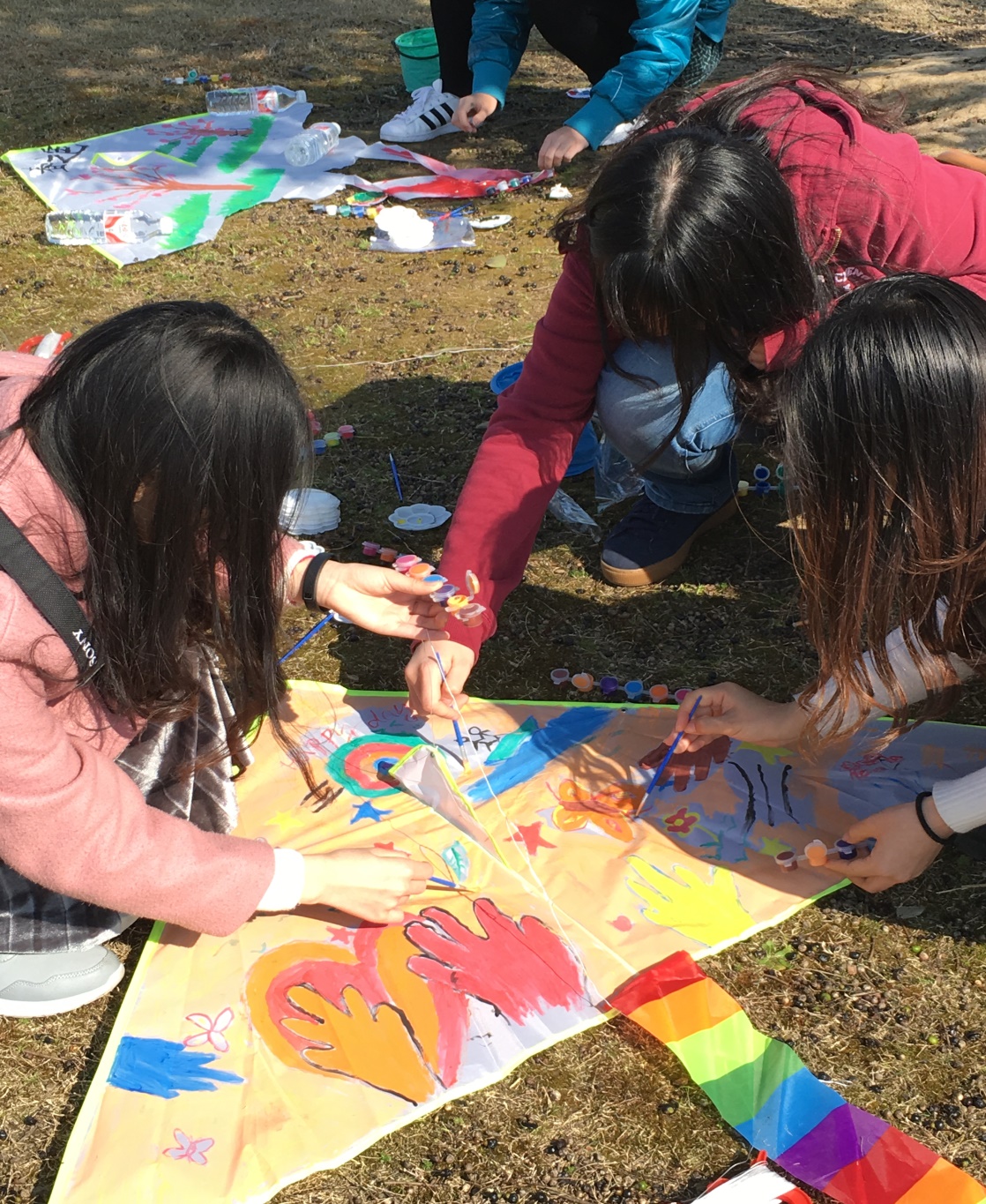 接下来,大多数同学们都画好了自己的作品,带着自己画好的风筝开始奔跑放风筝啦