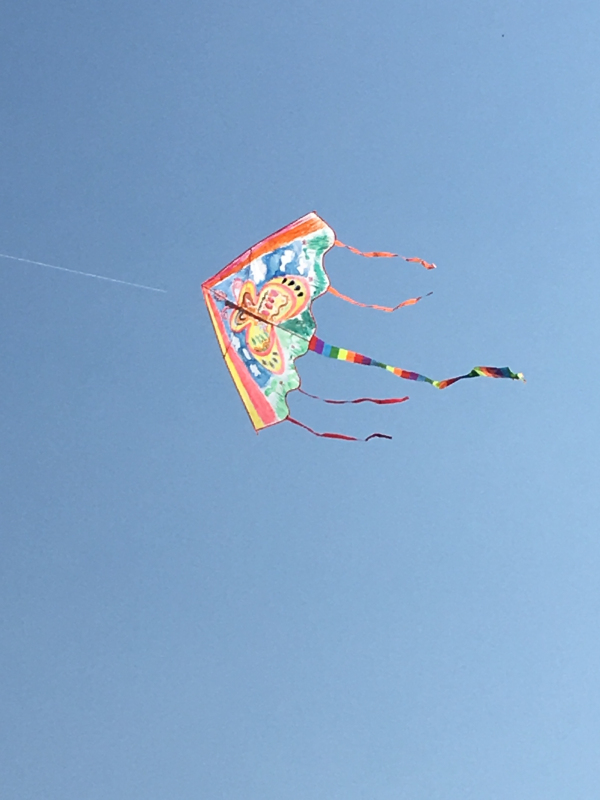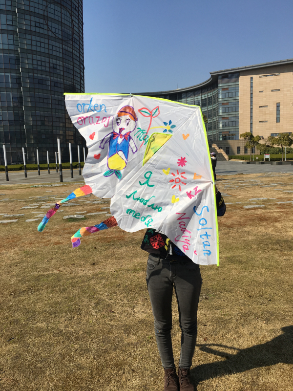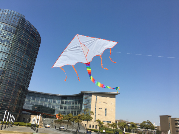 看着飞的很高很高的风筝,大家都露出了开心的笑容。很多同学还和自己的风筝合了影