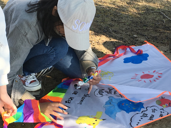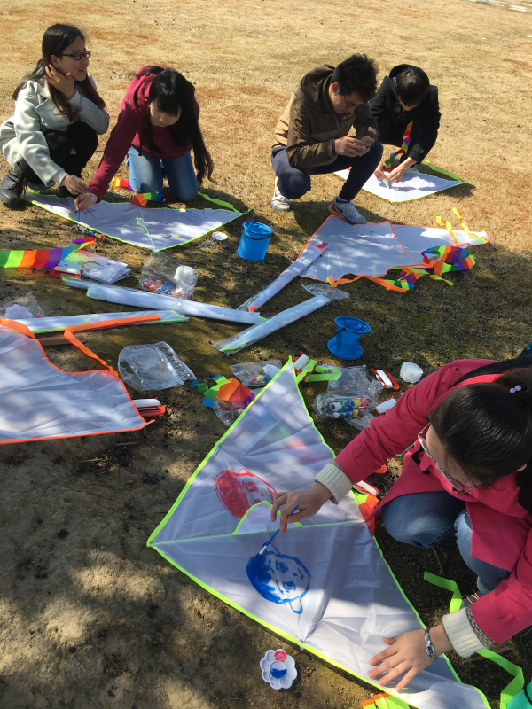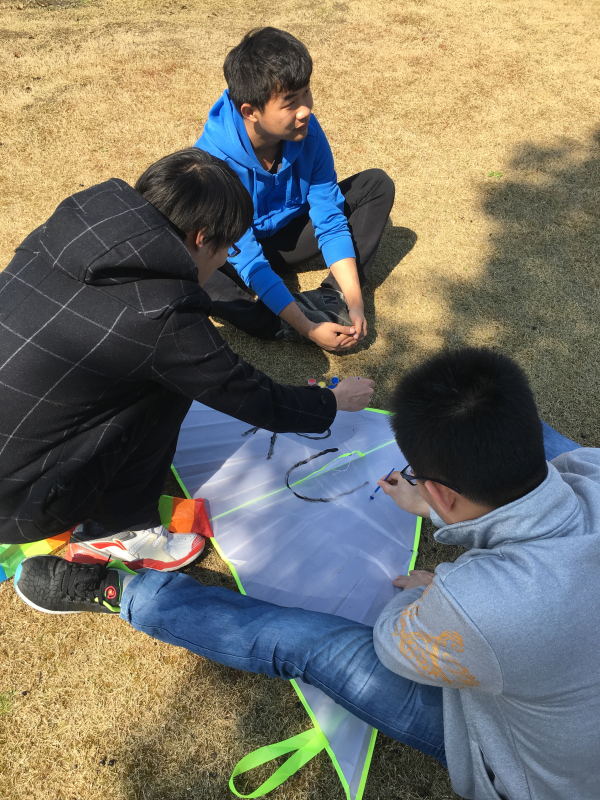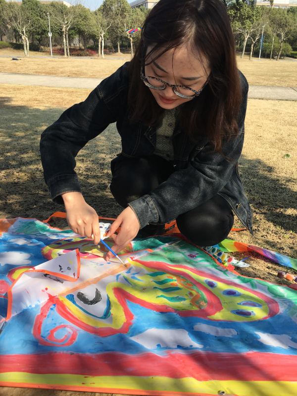 选好了自己所喜欢的大小形状的风筝之后,大家便开始了绘画创作,三三两两,数学系的萌妹子和汉子们摇身一变成为艺术家啦